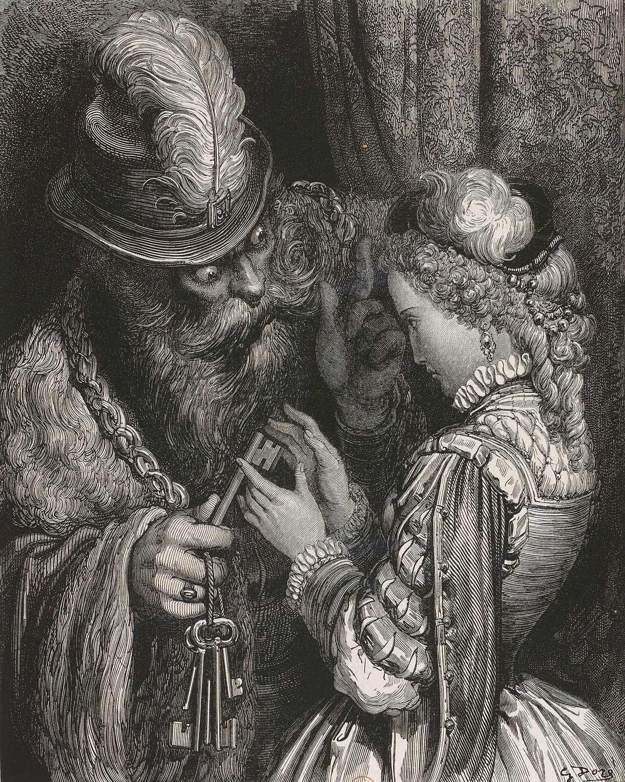 - Illustration of Bluebeard (Kat note: "i give the same look to my macaroni and cheese while i watch it heat up in the microwave")